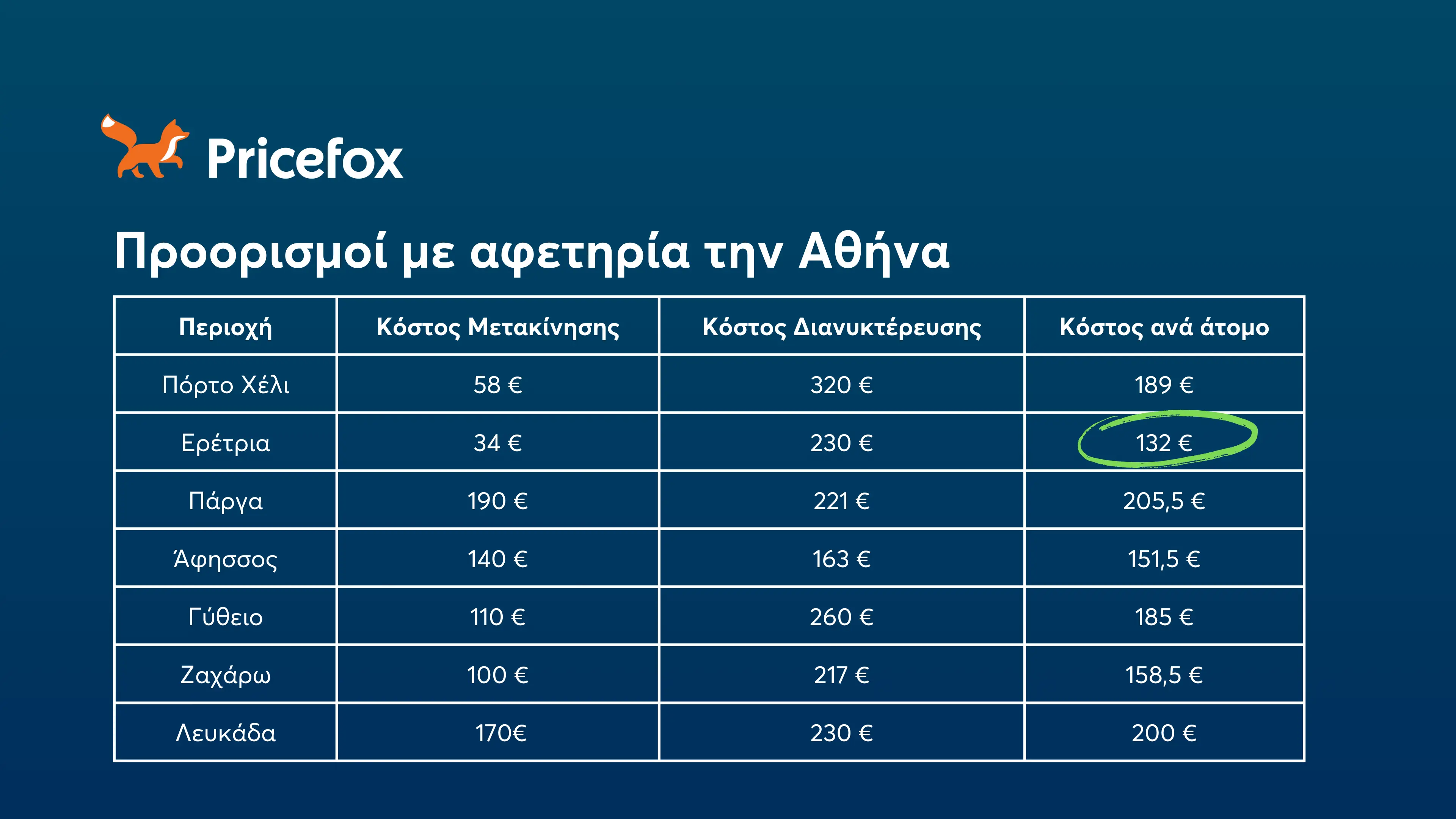Κόστος εξόρμησης με αφετηρία την Αθήνα