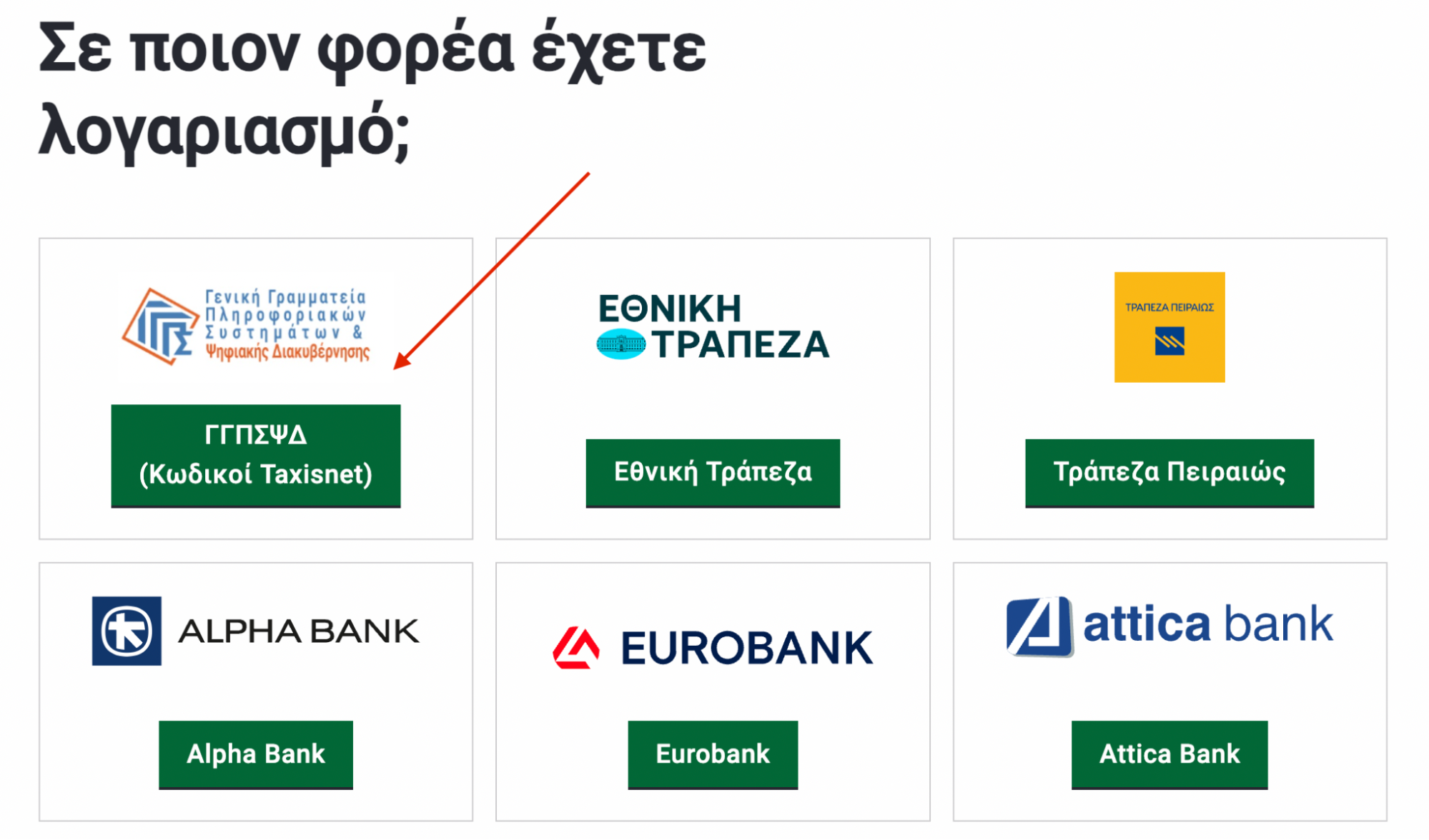 Επιλέγεις σύνδεση με κωδικούς taxisnet ή αν σε βολεύει περισσότερο, έναν από τους άλλους τρόπους σύνδεσης (με κωδικούς εφαρμογής ebanking κάποιας τράπεζας).